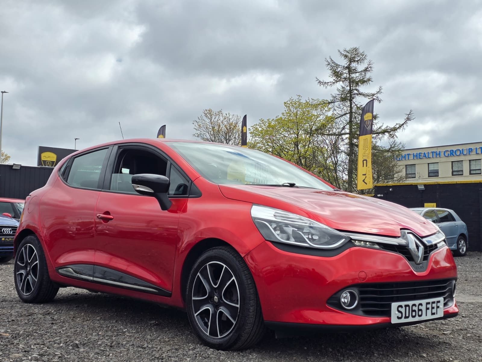 Introducing the striking Renault Clio 0.9 TCe Dynamique Nav Hatchback, available now at Alpine Motor Company in Dundee, Scotland. Dazzling in Flame Red, this stylish five-door model effortlessly combines eye-catching aesthetics with exceptional practicality, making it the perfect choice for your next vehicle. With a robust 90 PS engine, this manual petrol hatchback promises an exhilarating drive while remaining incredibly economical - enjoy the minimal £20 road tax and a fuel-efficient Euro 6 compliant engine. The full service history assures you of its reliability; you can purchase with confidence, knowing it’s been well cared for. This Clio comes equipped with eye-catching 16-inch Passion Black alloy wheels, enhancing its sporty appeal while providing enhanced grip on the road. Ideal as a first car or for those seeking a nimble city vehicle, this hatchback offers both comfort and functionality. The spacious interior, packed with modern technology and navigation features, makes every journey a breeze. Don’t miss your chance to own this fantastic Renault Clio. Visit Alpine Motor Company in Dundee today for a test drive and experience the perfect blend of style, performance, and efficiency!